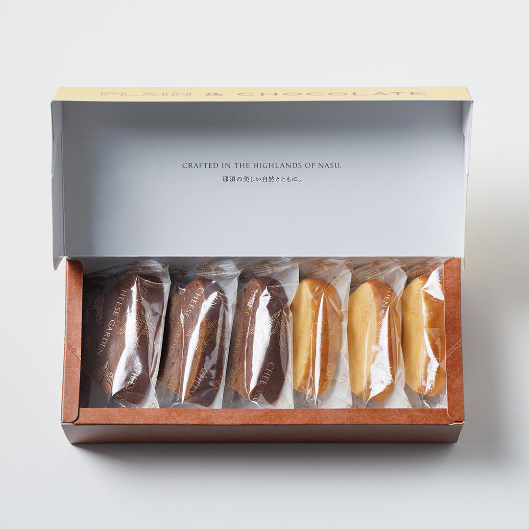 カマンベールの濃厚な香りがひろがる定番「チーズバウム」と、ほのかに香るカカオの風味が重なった季節限定「ショコラチーズバウム」が各3個ずつ入ったアソートセットです。