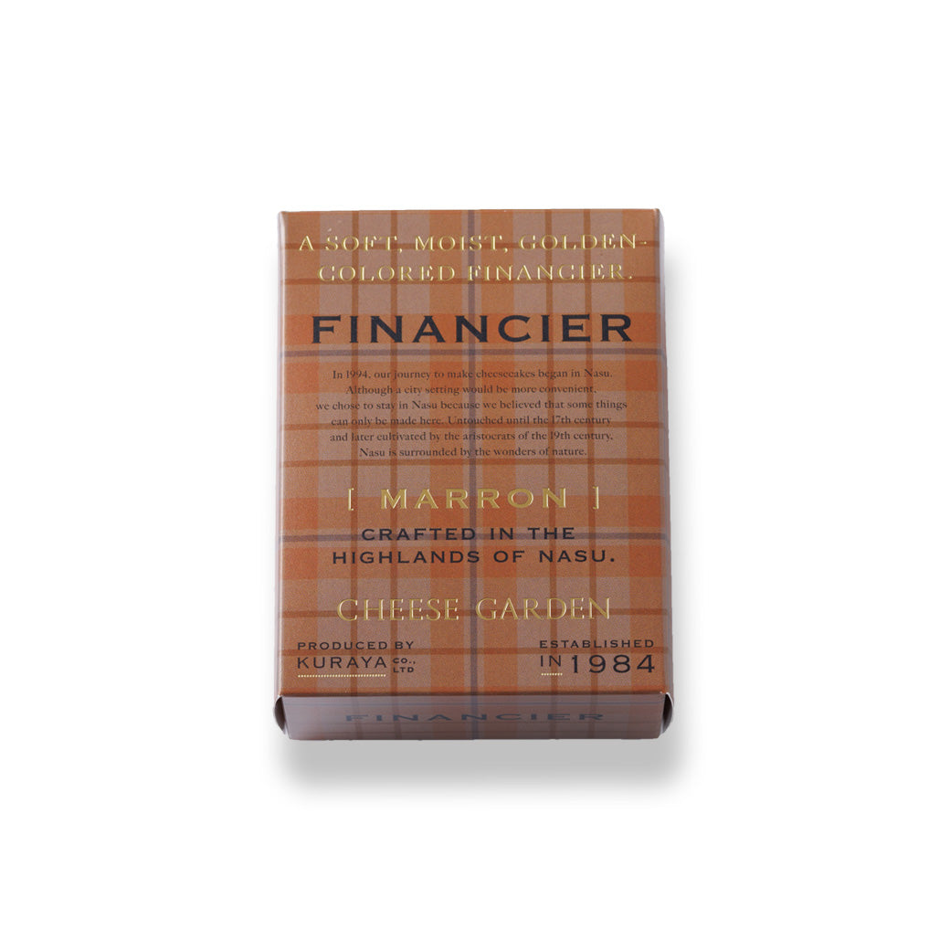芳醇なバターが香るフィナンシェ生地で、ブランド和栗「笠間の栗」本来の味わいを堪能できるマロンペーストを包み込み、しっとりと焼き上げました。