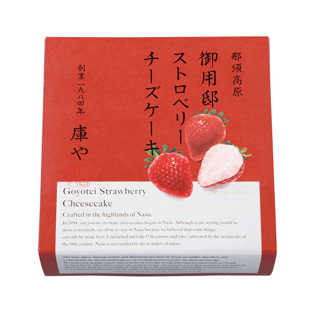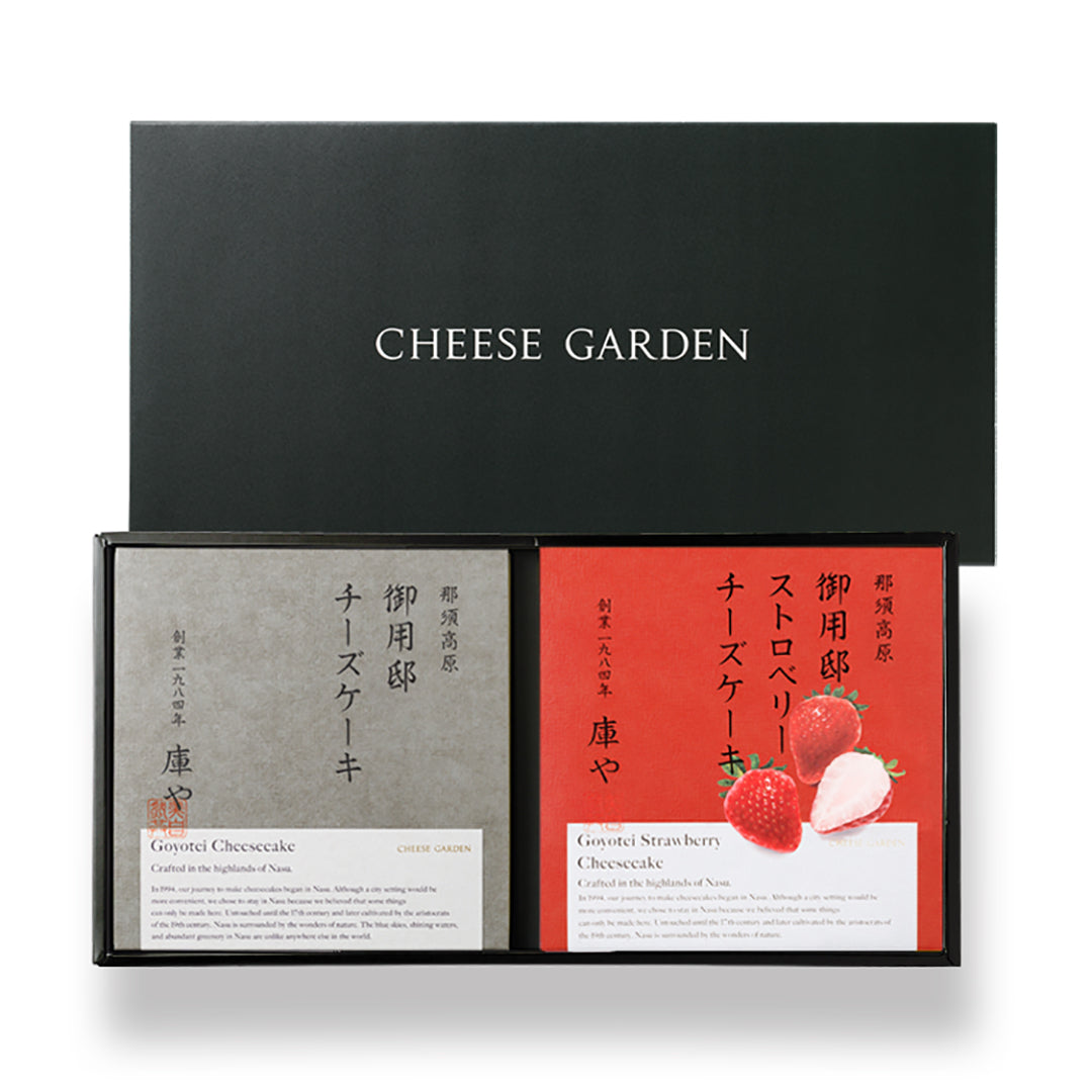 チーズガーデンの代表商品『御用邸チーズケーキ』と季節限定の『御用邸ストロベリーチーズケーキ』を同時にお楽しみいただけるセットです。