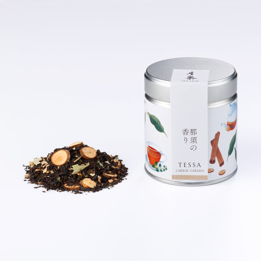 那須の自然を感じさせる美味しい紅茶をつくりました。切り株をイメージした桂皮がシナモンの風味をプラス。見た目のインパクトに決して負けない、飲みやすくスッキリとした味わいです。無添加・無香料で身体にもやさしいオリジナルブレンドティーです。