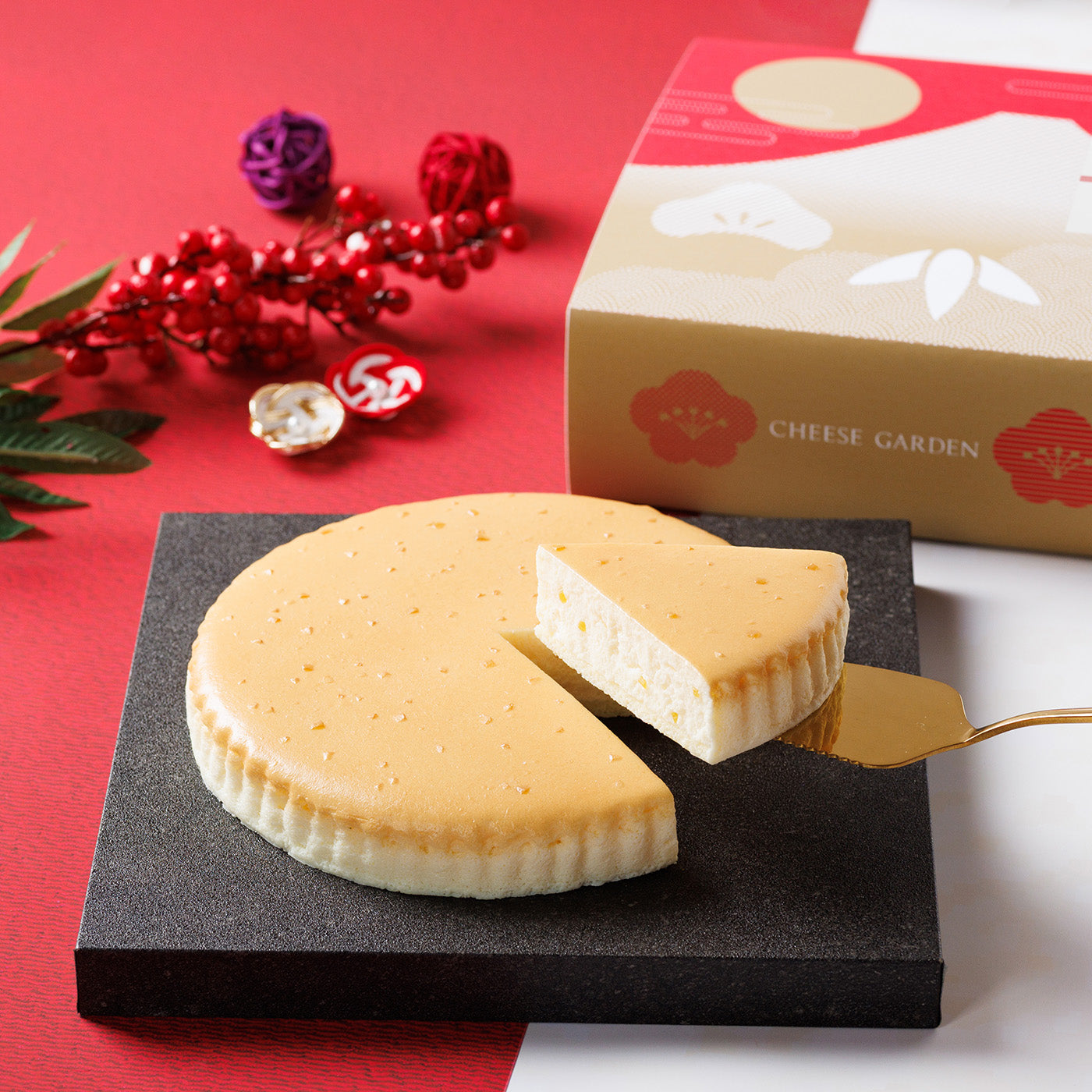 『御用邸柚子チーズケーキ』を、年末年始限定デザインの帯包装でご用意いたしました。華やかな色合いと和テイストのデザインとなっており、新年の贈り物にぴったりな一品です。ご挨拶やお手土産に、ぜひご利用ください。
