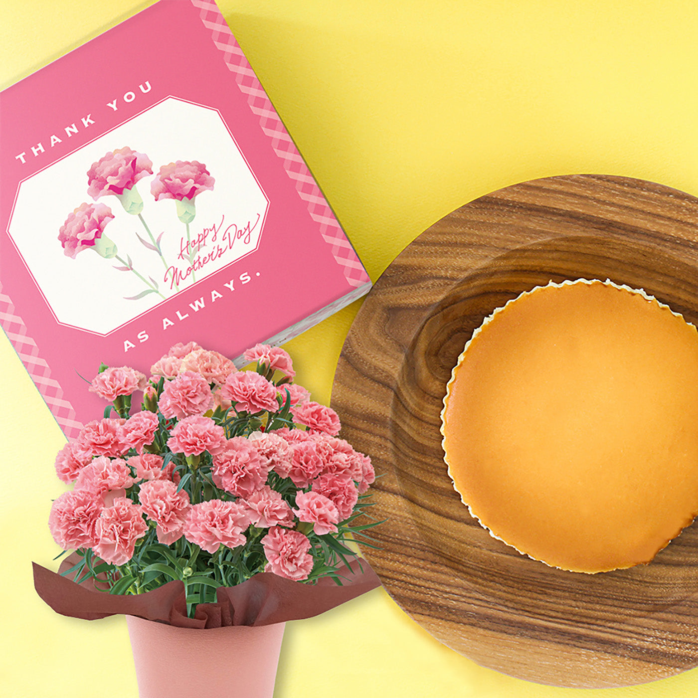 お花の嬉しさと、チーズケーキを召し上がる幸せなひとときを一緒に贈る、母の日にぴったりのギフトセットです。