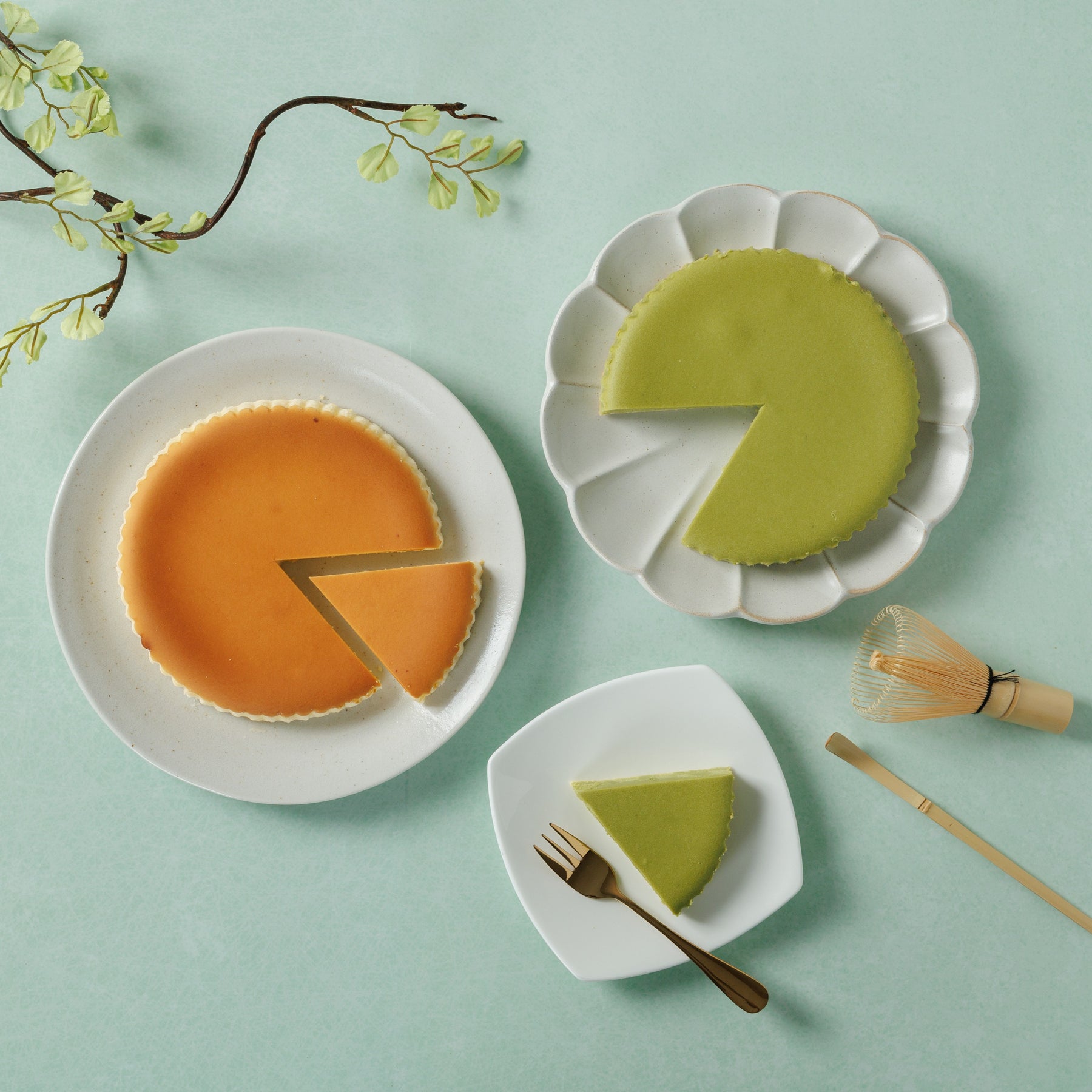 チーズガーデンの代表商品『御用邸チーズケーキ』と季節限定の『御用邸抹茶チーズケーキ』を同時にお楽しみいただけるセットです。