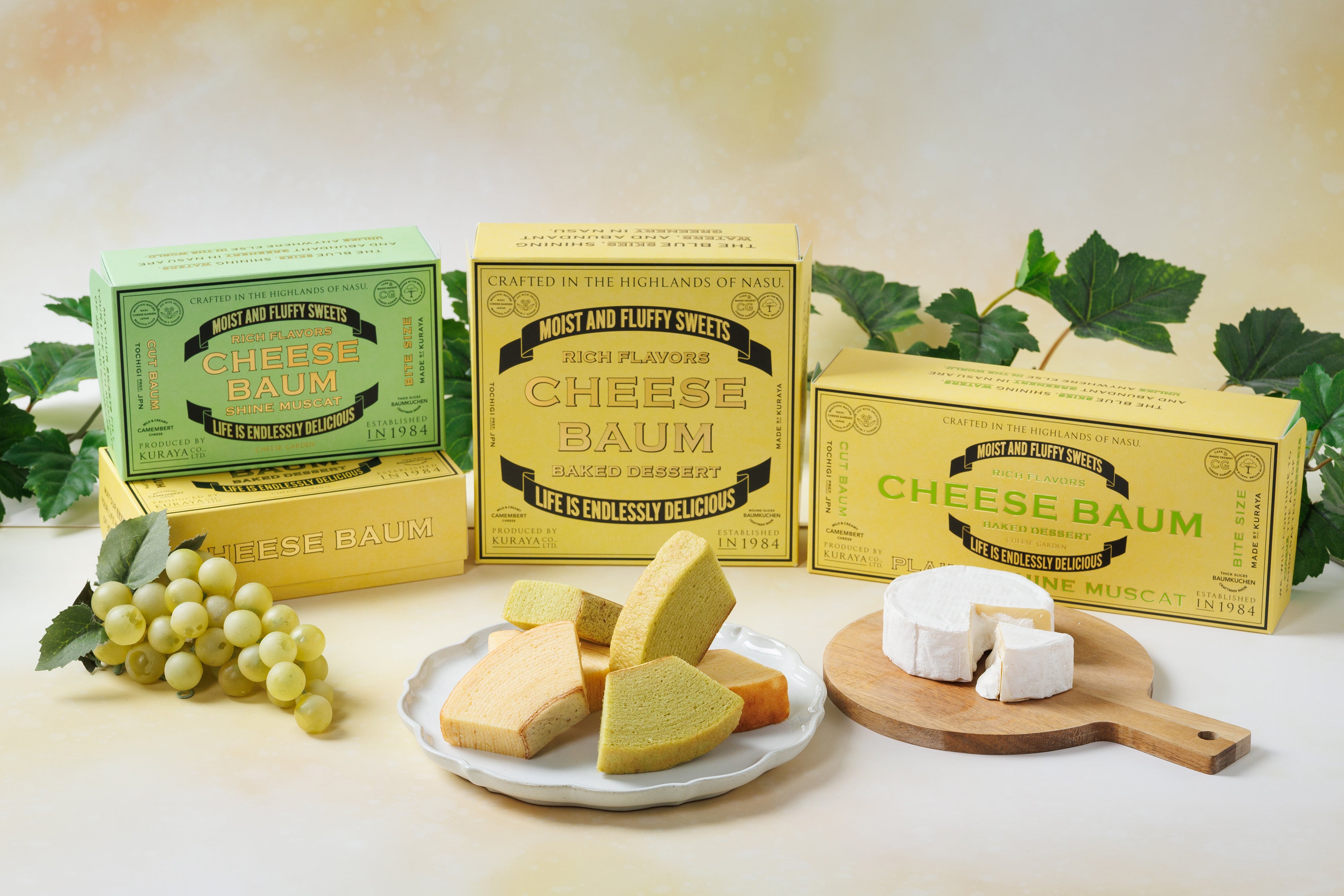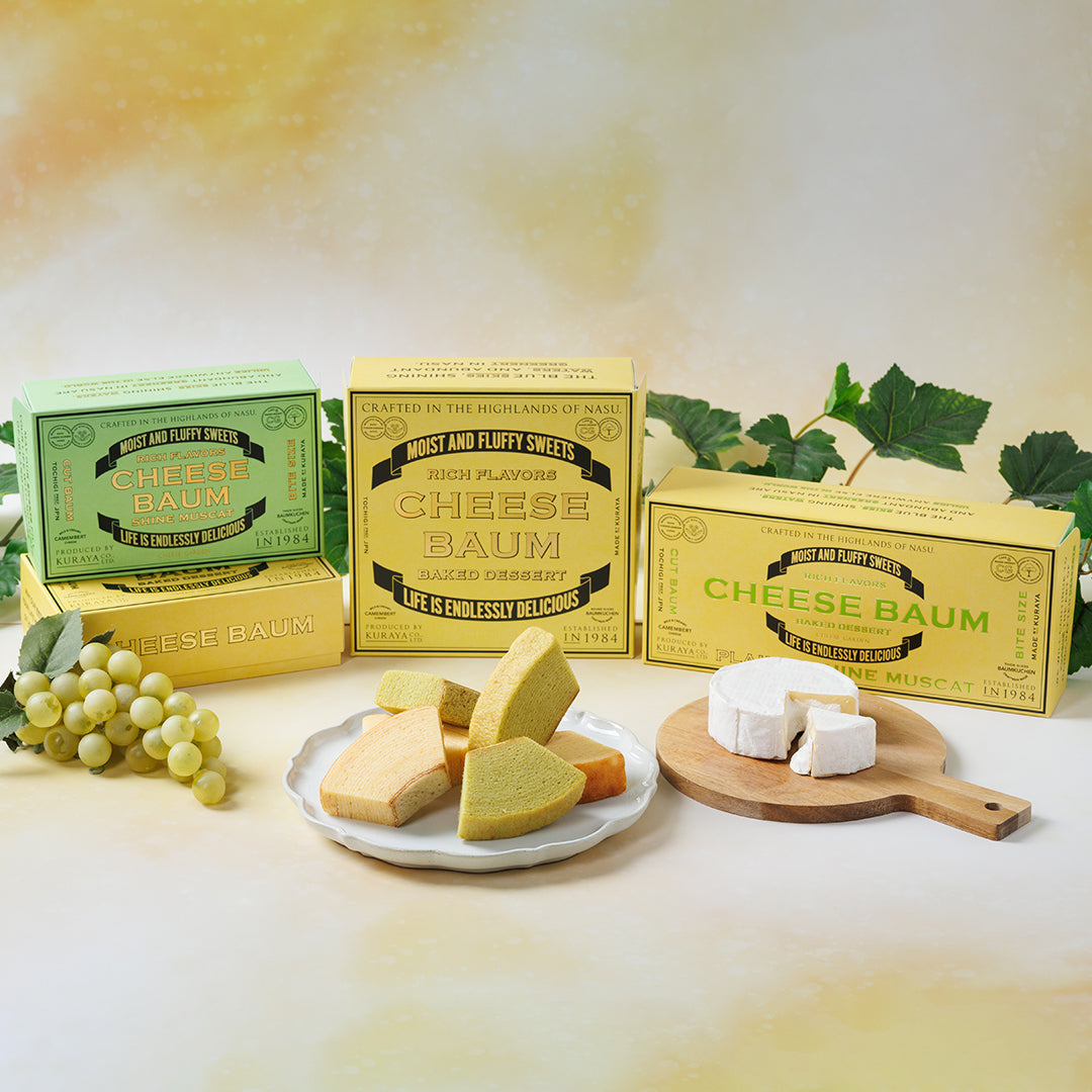 華やかな香りと上品な甘みのシャインマスカットの味わいに、奥行きのあるチーズの旨みがとけ合い、しっとり贅沢なバウムクーヘン。