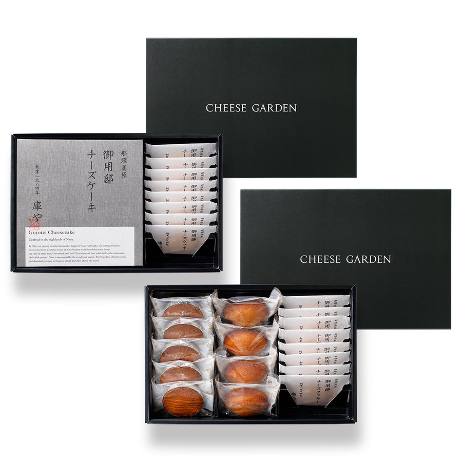 チーズガーデンの代表商品御用邸チーズケーキと、自慢の焼菓子を詰め合わせたセットです。 しっとり、濃厚な味わいの御用邸チーズケーキと、ブラックペッパーのアクセントがクセになる御用邸チーズクッキー、焦がしバターが香るふっくらとしたフィナンシェ、チーズとバターが香る厚焼きのガレットがお楽しみいただけます。