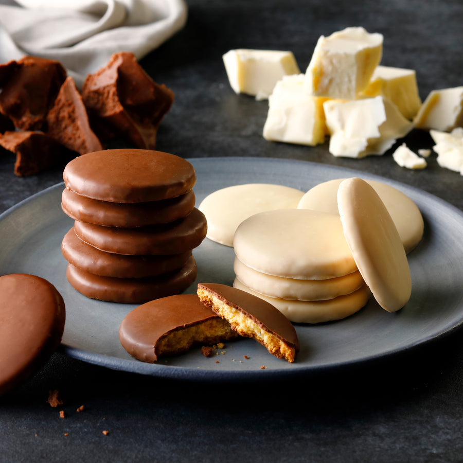 2種のチーズやスパイスなどをブレンドして焼き上げた『御用邸チーズクッキー』にベルギー産のホワイトチョコレートとミルクチョコレートをコーティングした、季節限定の人気スイーツ。