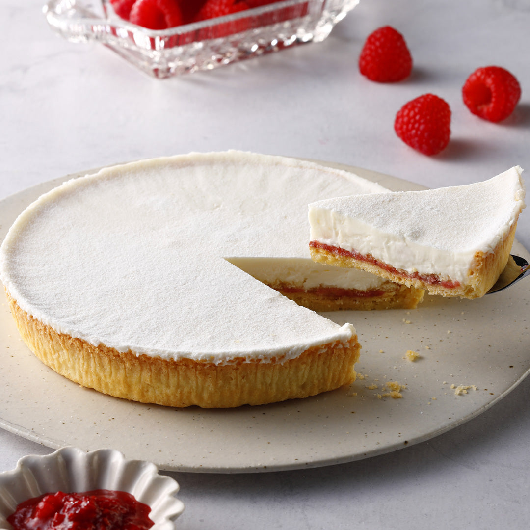 クッキー(国内製造)、ナチュラルチーズ、クリーム、スポンジケーキ(鶏卵、小麦粉、砂糖)、砂糖、牛乳、ラズベリージャム、はっ酵乳、ゼラチンパウダー、レモン果汁/安定剤(ローカスト、加工澱粉)、乳化剤、甘味料(ソルビット)、膨張剤、増粘剤(ペクチン)、酸味料、香料、(一部に小麦・卵・乳成分・ゼラチン・りんごを含む)